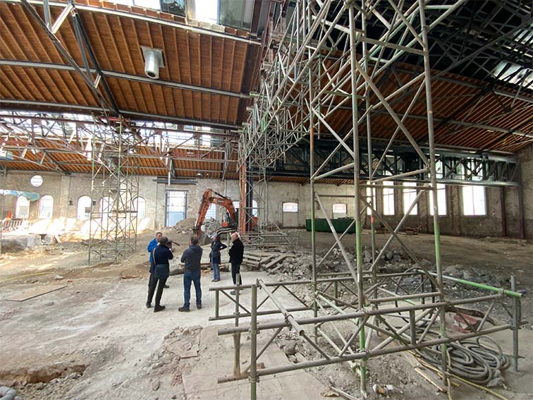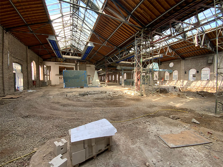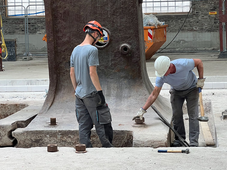 Die Demontagearbeiten sind abgeschlossen. Zur Zeit wird die Grundplatte mit ihren vielen integrierten technischen Kanälen erneuert.