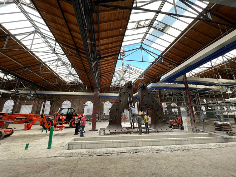 Zeitgleich werden noch einige Großobjekte der Ausstellung vorsichtig von Spezialisten zerlegt und am neuen Ort wieder aufgebaut.
