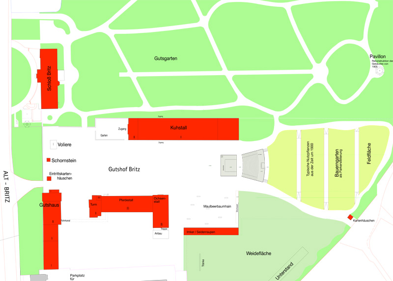 Untersuchung zur Eignung des Gutshofgeländes für kulturelle Nutzungen des Bezirks Neukölln; Ergänzung des Ensembles mit neuem Tierstall, Kutschenhaus, Eingangshäuschen und Küchenbau