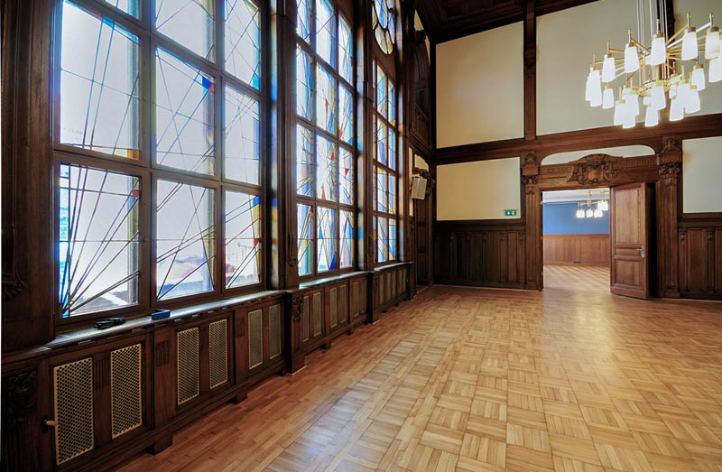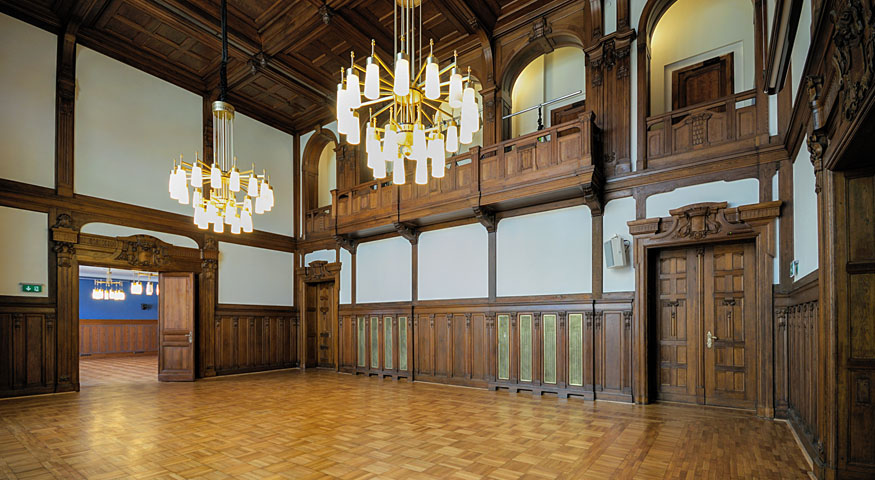 Sanierung und energetische Ertüchtigung sowie Schaffung von Barrierefreiheit in Teilbereichen des Rathauses während laufenden Betriebs; Brandschutz und haustechnische Ertüchtigung der Ratssäle mit denkmalpflegerischer Restaurierung (Baudenkmal).
