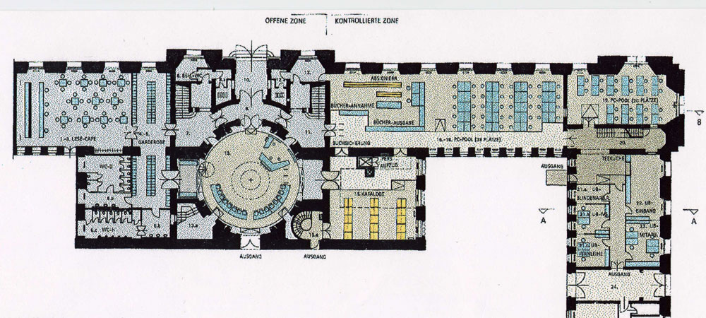 Umbau und Sanierung von Teilbereichen der Universitätsbibliothek; Einbau eines Informationszentrums im Kuppelsaal (Baudenkmal)