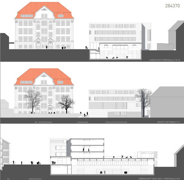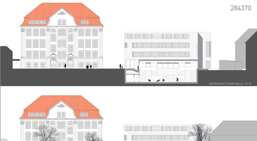 Neuordnung und Ergänzung zweier vorhandener Schulgebäude um Anbauten und ein weiteres Hauptgebäude mit Sporthalle.